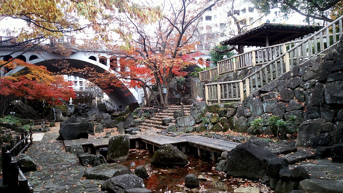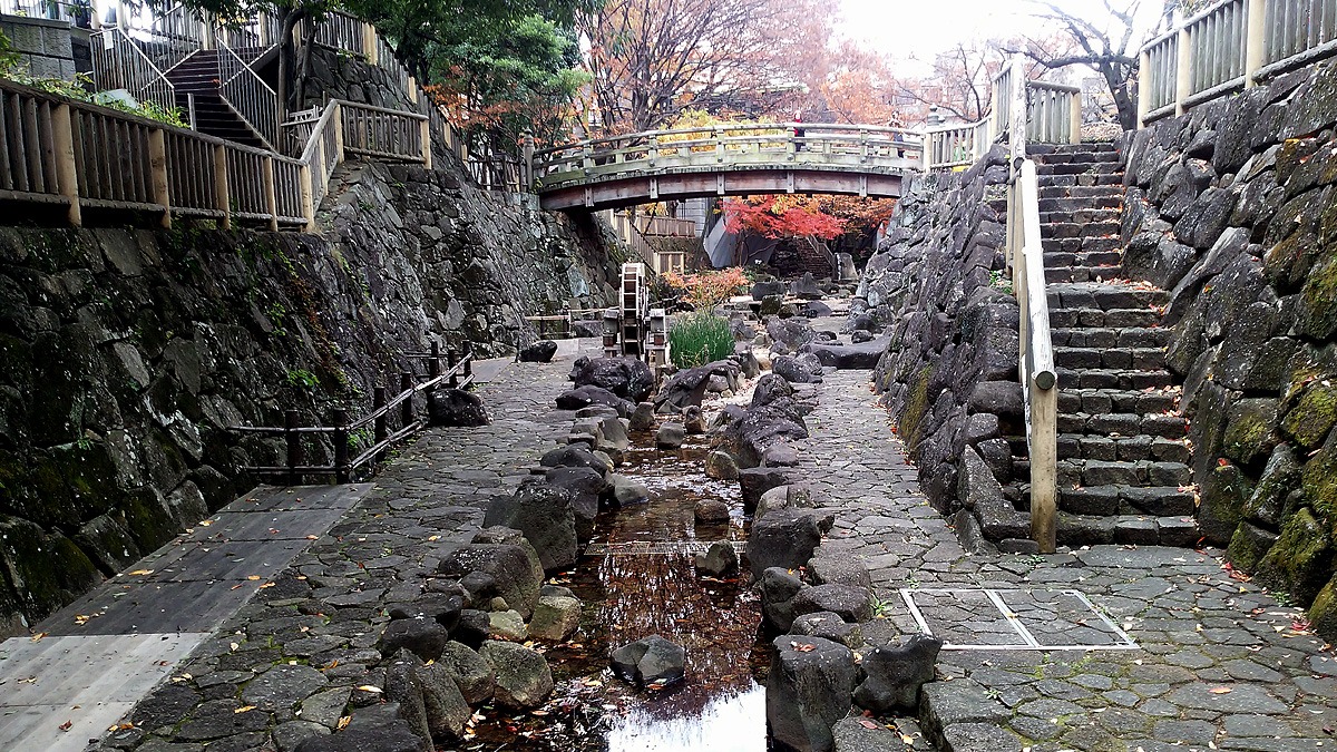 石神井川の旧流路に整備された公園です。 私はこの近くに勤めていた時に公園だとは思っていませんでした。 初めてゆっくり散歩をして歴史を現代で良い感じに整備している、日本らしい風景に心が和みました。 これからも変わらずに後世に残してほしいです。 流路に枝垂れるもみじやさくら、水車、公園を横切るアーチの橋などが見所で、日本の都市公園100選にも選ばれているそうです。 夏には水遊びをする子どもたちでいっぱいになります。 流れの水は、濾過装置による循環水を使用しているそうです。 東京都北区王子は他にも散策する所が多いので、ゆっくり散歩を楽しむのもお勧めです。